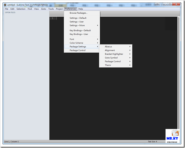比較簡單的進入方式就是進入 Sublime2 之後,點選上方功能表的「Preferences > Browse Packages」